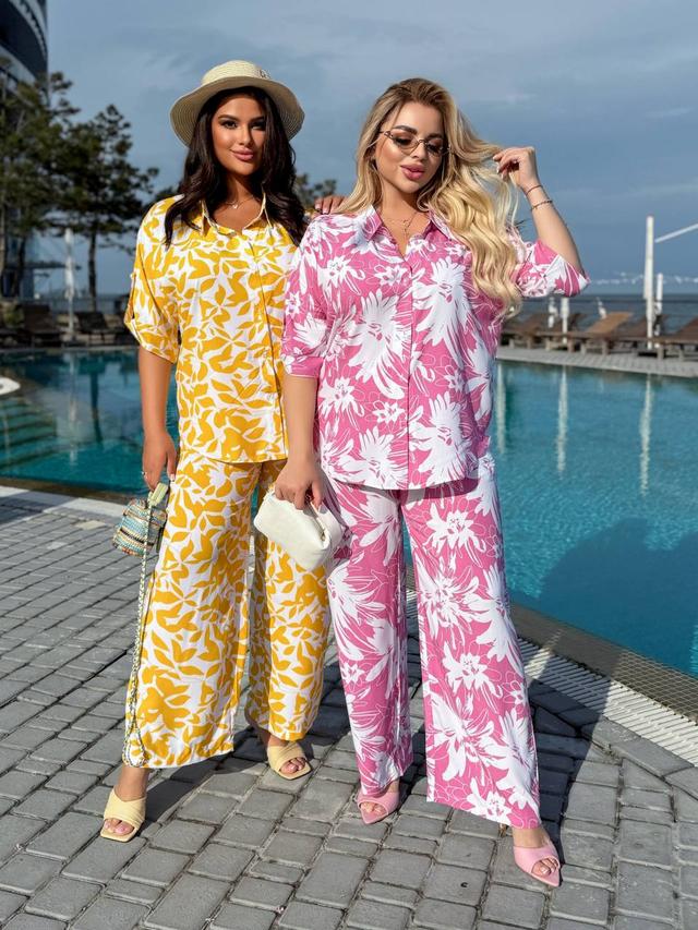 48-62 Натуральний літній костюм сорочка та широкі штани зі штапелю